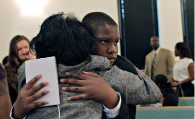 The preacher spoke about orphans, how Jesus lifted them up. He described an epidemic, “alarming numbers of African-American children who need us.” Then he introduced Davion, who shuffled to the pulpit. Without looking up, Davion wiped his palms on his pants, cleared his throat, and said: ”My name is Davion and I’ve been in foster care since I was born … I know God hasn’t given up on me. So I’m not giving up either.”