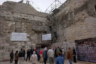 Pilgrims visiting the Holy Land this Christmas season will encounter an unfamiliar sight: The historic Church of the Nativity, wrapped in scaffolding. The church was erected by St. Helena over a cave which is believed to have been the place where Mary gave birth to the Christ Child. The Emperor Justinian I, Byzantine emperor who ruled from 527 to 565 AD, constructed most of the church as it is visible today. Parts of the Church of the Nativity date back more than 1,500 years; the last significant repair was in 1478, when Venetian carpenters painstakingly restored the ceiling. Today, after 600 years of wind and weather, the rooftop is leaking—threatening the priceless mosaics and other artwork and sacred items in the church, as well as the plaster, floors and frescoes.