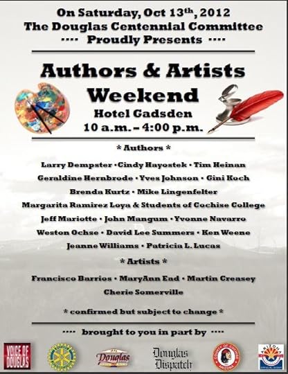 On October 13, from 10am until 4pm I’ll be one of more than fifteen authors signing books in the lobby of the historic Hotel Gadsden in Douglas, Arizona.