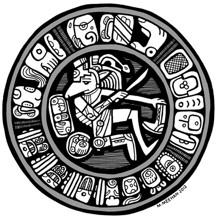 Perry nodded and pointed to a series of glyphs on the wall. He scanned the symbols with his wrist comp and called up a translation. “This is a representation of the Mayan Long Count Calendar. Notice how the symbols repeat. They clearly understood cyclical time.”