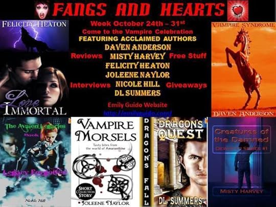 Make sure to stop by Emily Guido’s blog starting this Friday to learn more about Dragon’s Fall and several other great vampire titles. Her blog is at: http://emilyguido.com.