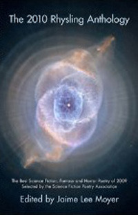 I was very honored this year to be nominated for the 2010 Rhysling Award. The Rhysling Award is presented to the best speculative poem in a given year. There are two categories. One for poems under 50 lines and one for poems 50 lines and over. This year's Rhysling nominees included such people as Neil Gaiman, Bruce Boston, G.O. Clark and many more. If you know someone who likes both poetry and science fiction, it would be hard to go wrong with this book that presents the best speculative poetry of 2010.