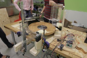 Roboflower: a robotic flower that reflects weather conditions by changing color and opening and closing. (right)