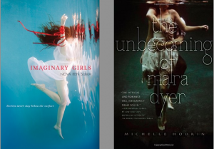 “There were so many amazing covers in this process, I’ve thought of framing them and hanging them on my wall. So much goes into finalizing the cover–publisher’s approvals, comments from sales and marketing teams. The team went through several different options before getting it just right. So when I did see the cover I loved it, but I wasn’t sure if it was FINAL FINAL, so I didn’t want to get too attached. Side story: One of the covers involved an underwater photo of a girl in a white dress. She was kicking her legs, the skirt blooming out around her. It was gorgeous, but thankfully we didn’t use it–it would’ve been too close to The Unbecoming of Mara Dyer or Imaginary Girls. (See those covers at right).
