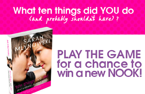 2. For Sarah Mlynowski’s latest (so hilarious and heartwarming) and a Nook! List up to 10 things you did, and shouldn’t have… (not here, on Facebook). here are my five: