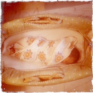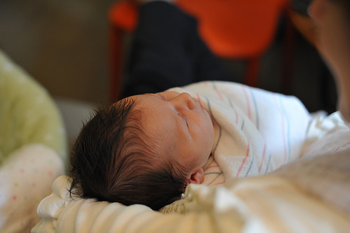 I won't make Photo Friday into Baby Friday, I promise. But this? It's really what's going on in my life right now. You know, living in a bathrobe, making sure she eats 8-12 times a day (not kidding!), and watching her sleep and gurgle.