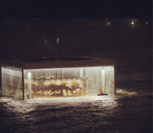 This one image caught me on twitter on Monday night–the historic carousel on the Brooklyn waterfront, meticulously restored just last year: