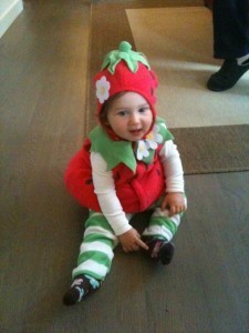 And then, on Wednesday, I got to have the image of people on my block, standing outside with candy and costumes and a sense of togetherness. New York always rises to the occasion. Baby June the strawberry enjoyed herself quite a bit too: