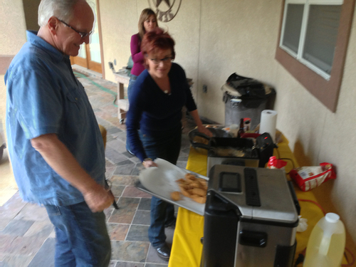 We’re having a Super Bowl party and fish fry at my house.