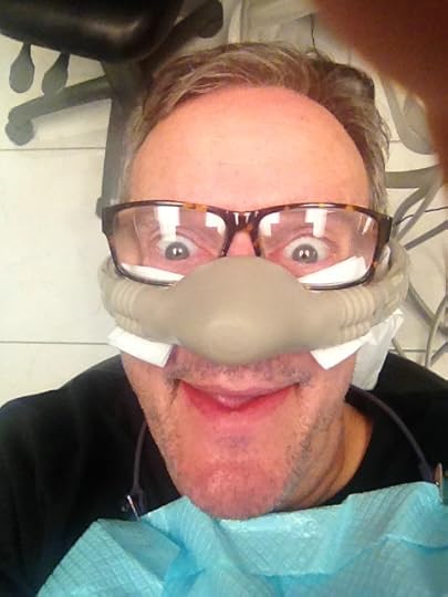 Waiting at the dentists office. My night guard (which prevents me from grinding my teeth) is a tight fit. It popped off one of my molar caps when I took it out. Yikes!