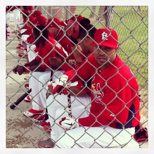 #Cardinals shortstop Rafael Furcal joins a mostly minor-league team for a B Game on a back field, complete with chain-link dugouts. On Feb. 28.