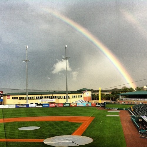 A rainbow over Roger Dean after today’s #Cardinals game. Feb. 25, 2013.