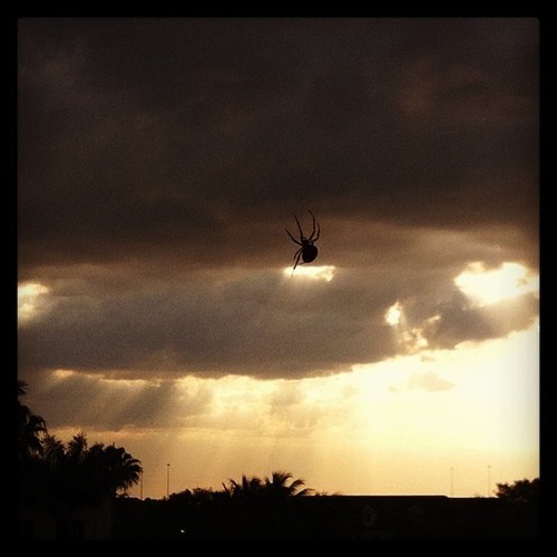 At Roger Dean Stadium, a spider appears to be scaling the clouds as she weaves a web near the press box.