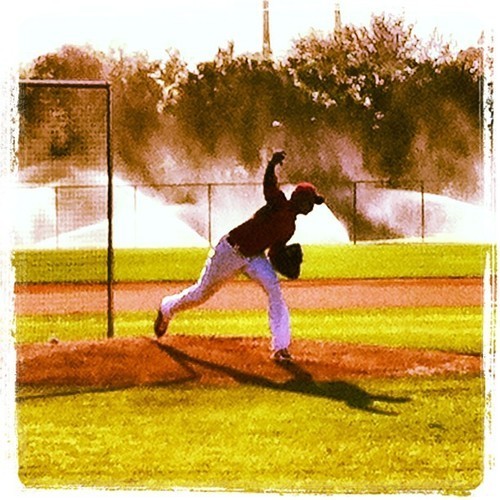 An early-morning live BP session for #Cardinals prospect Tyrell Jenkins, with the sprinklers still on in the distance.