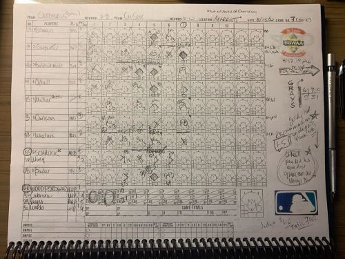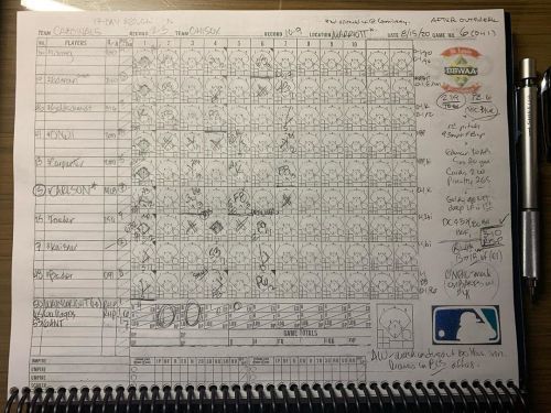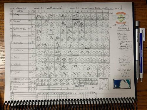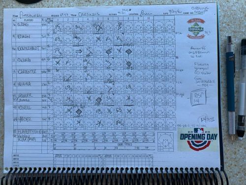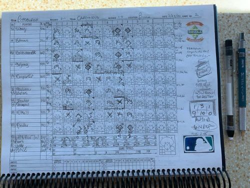 #Cardinals at #MNTwins, July 29. Catching up on scorebook images. Got busy doing something else, as you know. Game 5, in the books. And this was the last baseball for awhile.