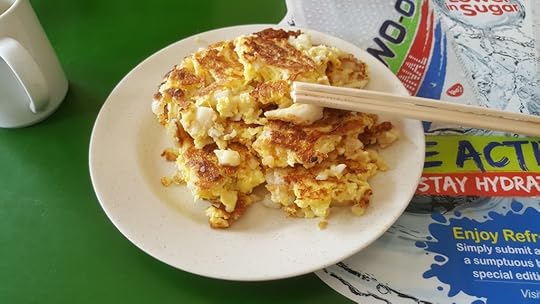 No, you’re wrong. You just are. This is not the affable dessert that you have scoffed down at your grandmother’s on a pleasant Sunday afternoon. This is, in fact, a savoury omelette type concoction made primarily with diced up white radish, preserved radish, eggs, and garlic (or other seasoning). With a nice dollop of chili paste on the side if you so desire (or mixed through it if you so desire that). “But where are the aforementioned carrots!?” I hear you warble. There aren’t any. So there. It’s a lost in translation sort of thing with the Hokkien name of this dish Chai tow kway meaning radish or carrot (chai tow) cake (kway).