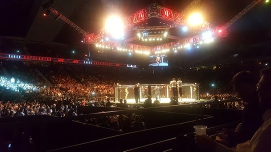This one went the full three rounds and dos Anjos did just enough in a pretty tit-for-tat affair of grappling and wrestling. Nothing too exciting and I wasn’t too impressed with dos Anjos at all. I started chatting to the usher during this bout; this would re-occur during the night. He was lonely and I needed some stimuli.
