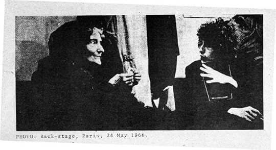Most definitely, it’s NOT Paris, May 24, 1966, as S. Pickering had captioned in his publication. There are several photos with Bob and the lady. I think all or most of those were taken by Barry Feinstein. There’s one in Feinstein’s Real Moments photo book. It says Birmingham, (May 12) 1966 - “This old lady who sold flowers came in and they really hit it off. He loved to gab with older people.”