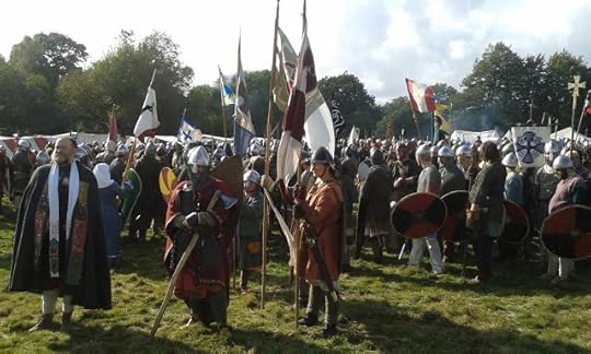I spent yesterday watching the re-enactment of the Battle of Hastings, 48 hours beyond its 950th anniversary, in the grounds of Battle Abbey, and an extraordinary event it was. I was there partly to take my children and partly to sell my detective story based in 1119-20,