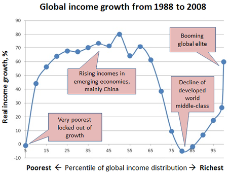 Two graphs sent to me in the past 36 hours make the point for me. The first (thanks, Rob) shows what has been happening to global income distribution, as we all descend into semi-slavery: