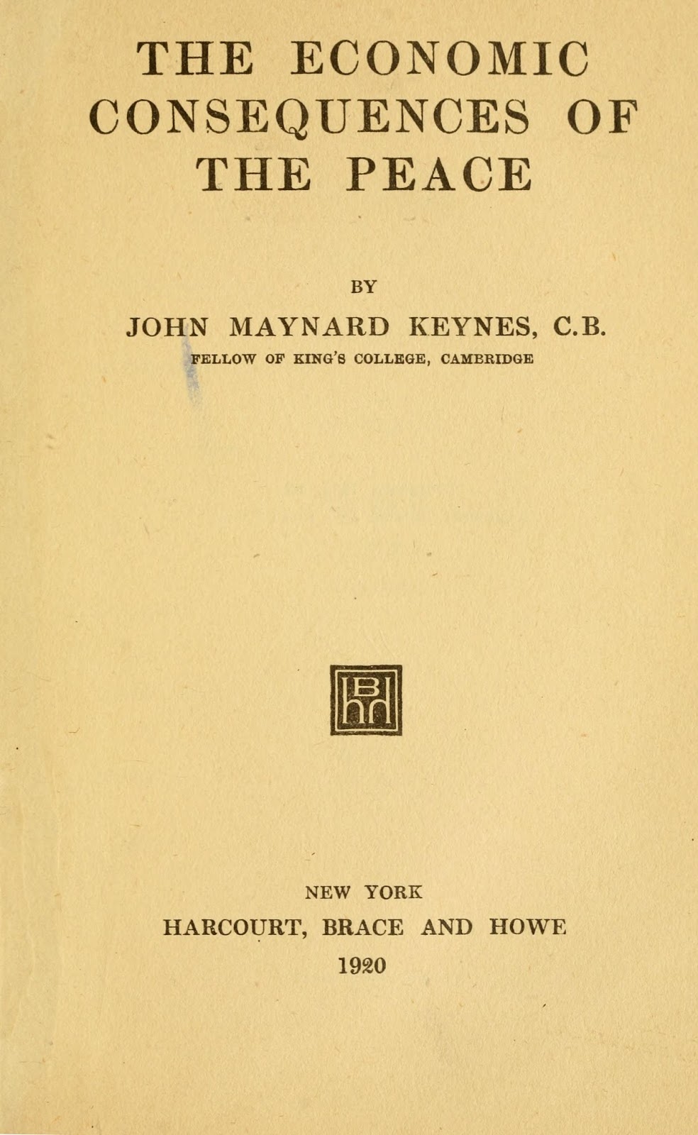"The future life of Europe was not their concern; its means of livelihood was not their anxiety. Their preoccupations, good and bad alike, related to frontiers and nationalities, to the balance of power, to imperial aggrandizements, to the future enfeeblement of a strong and dangerous enemy, to revenge, and to the shifting by the victors of their unbearable financial burdens on to the shoulders of the defeated."