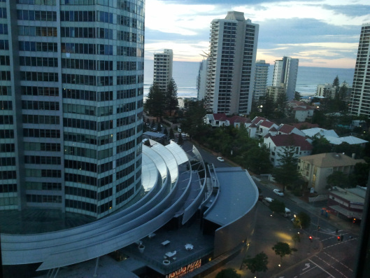 Okay, some poetic licence there, but I am a fantasy author so I get to embellish. Nothing made up about the glamour of Surfers Paradise, however, and the Gold Coast City Council’s Literati writing festival 2012 ran as smoothly as the surf rolling up onto the pristine white beaches a block from the hotel where the authors were housed, the gorgeous Watermark. This is the view from my window past the iconic Q1 building:
