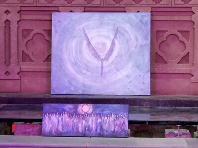 I see on the Altar a painting by Alison Knox: Angel on the Altar.
