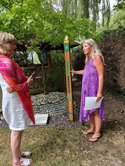 Continuing on the theme of Nature gardens, Sue and I dropped into Nina Dauban’s garden for an experience of Peace and to visit her Peace Pole. Sue attuned her “Sacred Heart of Emergence” pendants to Nina’s inspiration and poem. As Executive Director of Notthinghamshire Community Foundation, Nina has special interest in the Youth Voice in Action initiatives and made several useful suggestions how Positively Empowered Kids Festival could apply for funds (duly communicated to Jackie and Claire as we departed the garden). Her open-hearted, mindful energy brings the “Mother/Master Code of Care” to life – as symbolized in the pendants and expressed in this poem.