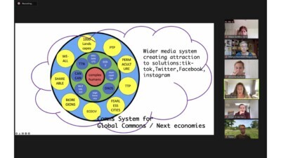 June 21 marked the start of what Integral City calls the Peope Quarter (from June 21 to September 20 ). In the northern hemisphere this quarter is our summer time – the normal season for people to connect back home, share stories and relax. But we are not in normal seasons or normal times. It seems that all the existential realities that cities can be threatened with are unfolding ahead of wherever we want to go – climate change can bring drought, flood, fire or tornadoes equally to our homes or the destinations we would love to visit; Covid19 continues to mutate in unexpected ways; financial down cycles aggravate food, fuel and energy costs. When we gather in circles – wether they be online or in person – how do we encourage each other with Aliveness? If our politics is broken, what is the alternative? Indra Adnan (co-initiator of the Alternative Global) and Sarah McCrum (rebranding herself as Liberate Humanity) and the seed Team of Living Cities Earth are reaching out to disrupt the systems that seem to be colluding against the human right to Happiness and responsiveness to Care.