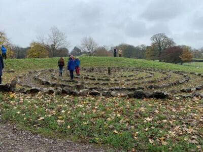 As a final moving meditation on the last morning, Calen Rayne shared the intricate research he has conducted on his own journey as a Shaman (which he shares through courses with Ubiquity University/Wisdom School). He then lead us outdoors to the Broughton Power Point where lies the labyrinth he attuned from and into the land (listening to the stones themselves locate their order in the spiral of the labyrinth).