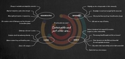 Resonating with Integral City’s Master Code of Care and 5 Maps and 12 Intelligences, that disclose the shape-shifting nature of a city as a living complex adaptive whole system, UrbanA discovered sustainable just cities are: