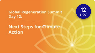 Because of the importance of this COP, Humanity Rising (HR) is convening a 12 day Global Regeneration Summit to coincide with activities in Glasgow from Nov 1 – 12. Each day, HR will be taking up a different theme and hearing from a panel of specialists as well as activists in Glasgow both inside and outside the conference. Climate activists across a range of perspectives, cultures and organizations will come together to express their concerns about government inaction, their plans for climate justice and their aspirations for a world aligned with natural systems.
