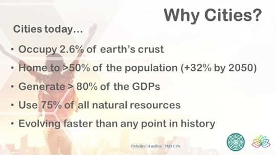 Integral City (IC), as an organization, was founded by Marilyn Hamilton. Why cities? In the developed world, 90% of the population is in cities. In the developing world, 50% of the population is in cities. Every threat to Gaia has coalesced in cities. We are at a choice point—to become Gaia’s reflective organ5 or to go extinct as a species.