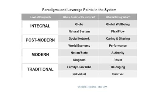 Numbers Buffers Stock-and-Flow Structures Delays Balancing Feedback Loops Reinforcing Feedback Loops Information Flows Rules Self-organization Goals Paradigms Transcending ParadigmsKeeping the most effective leverage points in mind as the paradigms in use and how to transcend them, we discover in the Integral City Map 4 clues to understanding what are the driving values of the Traditional, Pre-Modern, Modern and Post-modern/Integral paradigms as shown in Table 1.