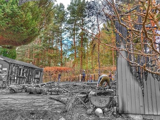 We could see the rowans standing guard between the CC and Homecare were smoke damaged, but apparently strong. (Unfortunately, one has been limbed to enable machinery into the site – but you can see healthy wood exposed.)