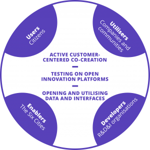 In making those discoveries, the teams of civic managers working with business realized the value of developing open interfaces so that they could share access.The basis of the Six City Strategy was developed in three large-scale spearhead projects: Open Data and Interfaces, Open Participation and Customership, and Open Innovation Platforms. They pushed forward the essential elements of the Finnish smart city model: customer-centered co-creation, opening and utilising data and developing services in real urban environments.