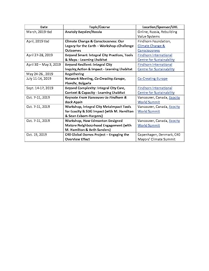 Here is our 2019 Calendar of Events & Training for Integral City.