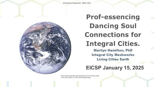 Integral City Meshworks as a Partner with Living Cities.Earth has co- designed a quick and easy webinar introduction to “Humaning Well Now” . Full Details and Register with Eventbrite – a $250 value by Donation!!Learn with 4 of Living Cities Earth Co-Founders:Marina Demchenko: The Multilevel Approach to Holistic Leadership DevelopmentEric Kohner: The 5 Knowledge Centers for HumanWellNowDarrell Gooden: Transcending VUCA: Value-Memes, Civic Societies, and Sustainable FuturesMarilyn Hamilton: HumanWellNOW IntegrationOnline Zoom Forum, EICSP, 15 January 2025 7pm-9pm GMT: Edinburgh International Centre for Sustainability and Peace