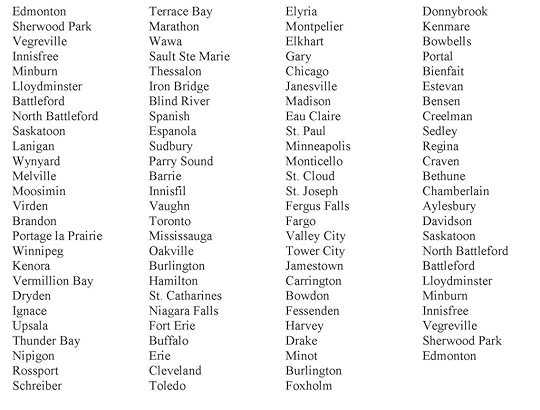 The cities along our route, were a veritable constellation of large and small settlements, that we came in contact with. Here’s the list!!!! that we [stamped in our mental passport] along the way: