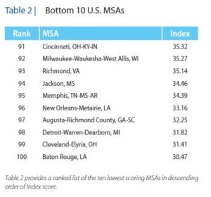 Beyond this initial analysis, it is fascinating to see who were the Top 10 US Cities and Bottom 10 Cities in the US (as shown in the following tables).