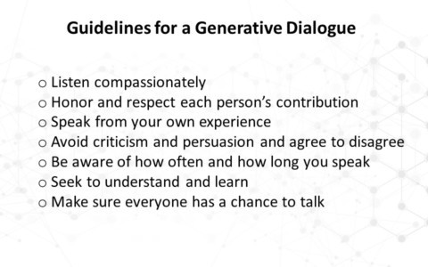 In order to start our dialogue, we shared the Guidelines for a Generative Dialogue so that everyone’s voice could be heard. And with this process, we planted the seed for a succession of 9 dialogues to follow.