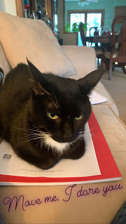 Salem. He is always plotting.He and Oreo play (at least, I hope it's playing) tag every night. Down the stairs. Up the stairs. They sound like the brothers in A Christmas Story when they're racing to get up the stairs to go to bed on Christmas Eve. But Salem is a lover as well, and will wrap all around your legs. Usually when you're trying to walk.