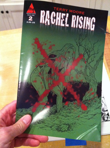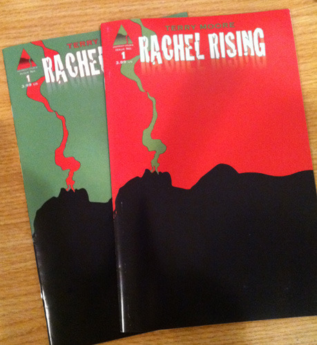 We've reprinted Rachel Rising #1, so you should have NO PROBLEM getting a copy. I talked to a pal the other day who didn't know RR had even come out yet. So much for PR, huh? If you're in the lop though, you should know there are two covers to Rachel Rising 1: the 1st printing green cover, and the 2nd printing red cover. Here's what you're looking for:
