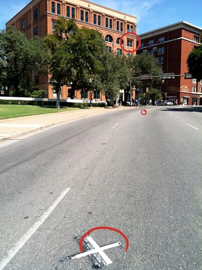 But having looked out Oswald's window I am shocked by how easy the shot looks, how short the distances are. This job did not require an expert shooter by any means. Then I walked to the grassy knoll and the angle from there is even better. You can see the entire route without obstruction and the distance is even shorter. When you think about hunters shooting moving deer at 300 yards, shooting at Kennedy with high-powered rifles in the middle of the street from 100-300 yards away was a sure bet. He was a fish in a bowl. In fact, the shots were so easy, neither of the women in Kennedy's car were struck by gunfire, and they were next to their husbands. That wasn't by chance… that was accurate shooting from short distances. When I stood on the X's in the street and looked at the gun locations, it gave me chills. This was too easy.
