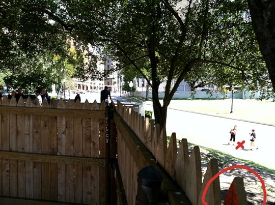 Do you think you could fire a gun from back here without people on the grass knowing you're here? The story is that plenty of people on the grass were certain they heard gunfire from behind them. But not from this spot. From a fence to our right.