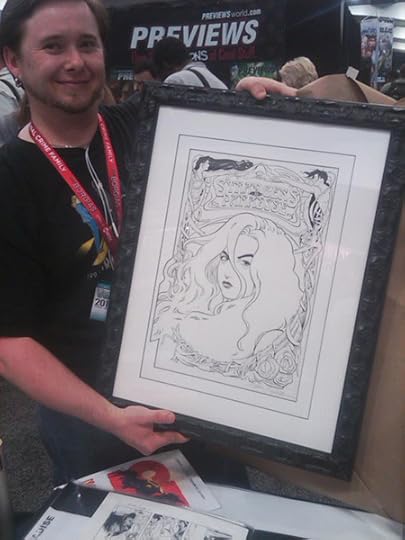 You never know where the original art will end up once it's sold. The pages tend to either find a good permanent home or travel the world from one owner to the other. For instance, the cover art to SiP #5, found a very loving home. Here the owner shows her off in a new custom frame. I have a feeling she's not going anywhere for awhile.