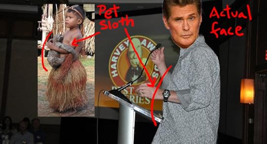 Yes, I have a pet sloth who lives under my shirt. I call him Skippy. This may give me a rather unflattering outline at times, but take my word for it, under that shirt… and Skippy… I'm ripped like a bad contract, as my confidant-kiss-my-swimsuit expression will tell you.