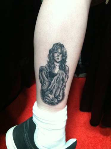 Seriously, I have no idea how many tattoos there are of my art, walking around on the planet. It's a treat to see them, but also a little scary, because somebody has made such a permanent commitment to something I drew. I'm almost ashamed to admit, I don't even have a tattoo of anything I've drawn. Nevertheless, they're out there and they're fantastic. The last one I saw was this one of Katchoo in her pose from the cover of SiP 55. The pose is actually inspired by Eminem's Angry Blonde cover.