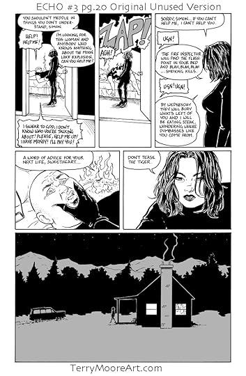 The cover art of Ivy torching the house was designed to go with this issue (#3). When I realized I wasn't using that scene, I scrambled to make a substitute cover. Much later, when it came time to turn in issue 15 to the printer, I was so tight on schedule that I just grabbed this unused cover and used it. It didn't make sense, but it was pretty. Yes, I am a little ashamed. And there you have it, the untold story of the path not chosen for Ivy Raven and the Echo crew. Here you see it as it was originally laid out, for issue 3, the issue that never was.