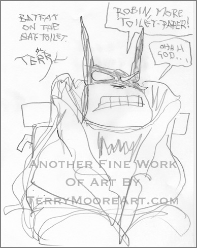 It's just impossible to draw at the conventions these days. Not enough down-time to do anything like that and, when I try, people look at the finished sketch like I just threw up on paper and handed it to them. Best to catch me at the drawing board at home, let me do my thing in the room designed for it, then pick up the mini-masterpiece at the show. Don't believe me? Here is a typical pre-ordered sketch: